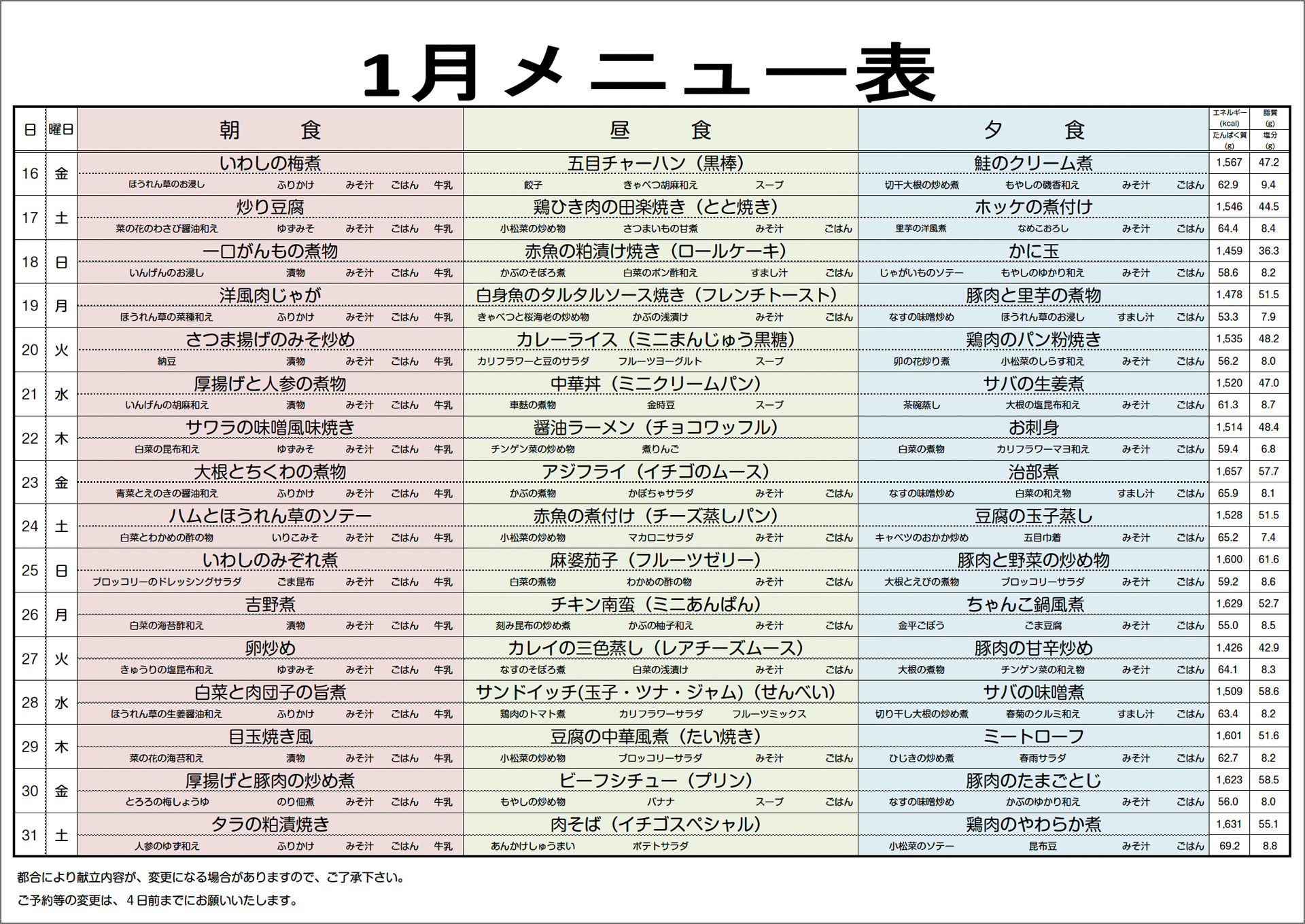 デイサービスご利用の方は、昼食とおやつが書いてある緑の欄をご覧ください。