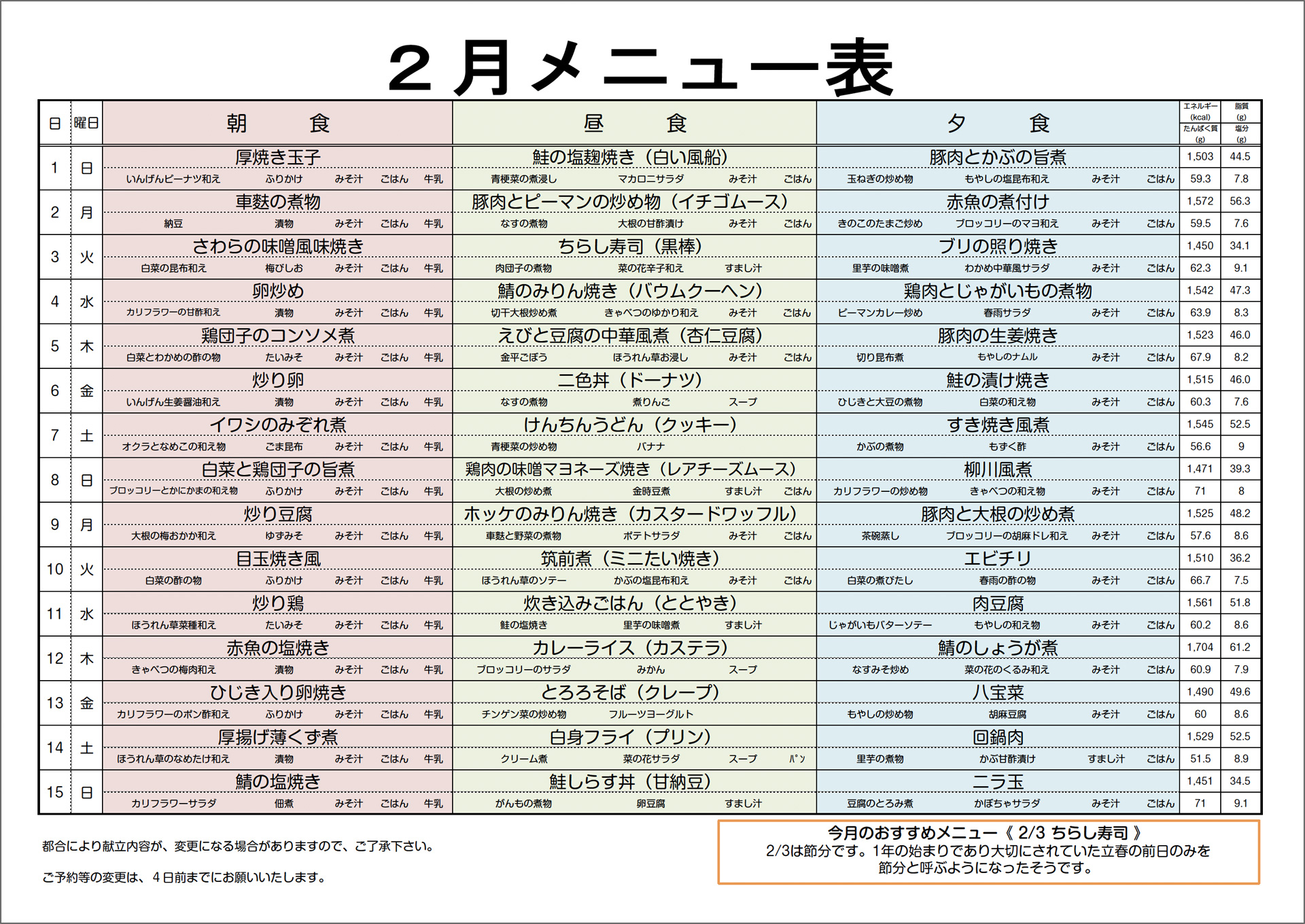 2月1日〜15日までの献立です